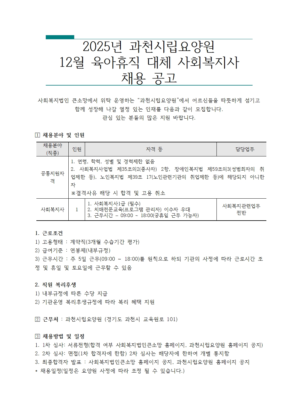 [ä¿ë]°úõ½Ã¸³¿ä¾ç¿ø À°¾ÆÈÞÁ÷ ´ëü »çȸº¹Áö»ç ä¿ë °ø°í