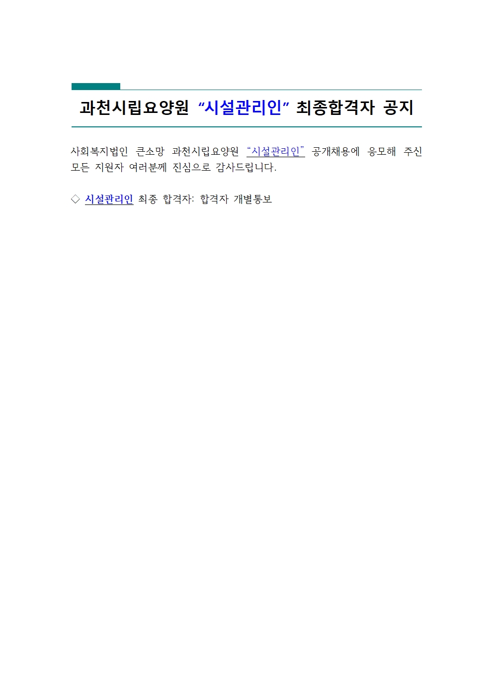°úõ½Ã¸³¿ä¾ç¿ø °ø°³Ã¤¿ë(½Ã¼³°ü¸®ÀÎ) ÇÕ°ÝÀÚ ¹ßÇ¥
